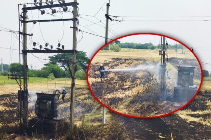 విద్యుత్ తీగ తెగిపడి దహనమైన పంట: జెసిబి సహాయంతో తప్పిన పెను ప్రమాదం..
