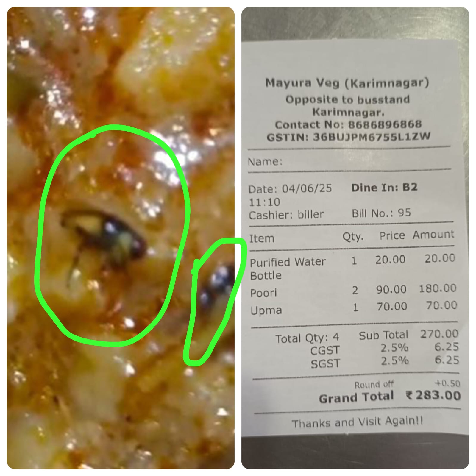 పూరీ కర్రీలో ఈగలు… మయూరా హోటల్ లో పరిశుభ్రత లోపం