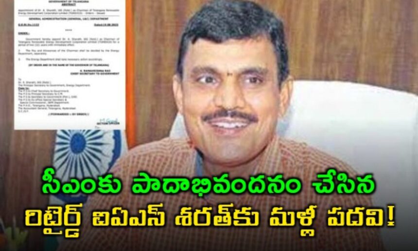 విశ్రాంత ఐఏఎస్ అధికారి శరత్‌కు రేవంత్ సర్కార్ కీలక పదవిని కట్టబెట్టింది. తెలంగాణ రెడ్కో చైర్మన్‌గా ఆయనను నియమిస్తూ ప్రభుత్వం ఉత్తర్వులు జారీ చేసింది. గతంలో నాగర్ కర్నూలు బహిరంగ సభలో ముఖ్యమంత్రి రేవంత్ రెడ్డికి ఐఏఎస్ శరత్ పాదాభివందనం చేయడం తీవ్ర విమర్శలకు దారి తీసింది. నాడు ఐఏఎస్ అధికారి శరత్ బహిరంగ సభలో ముఖ్యమంత్రి రేవంత్ రెడ్డి కాళ్లు మొక్కడంపై ప్రభుత్వ ప్రధాన కార్యదర్శి రామకృష్ణారావు తీవ్రంగా స్పందించారు.