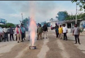 335 ఉద్యోగాలు కల్పించినందుకు బాణాసంచా కాల్చి స్వీట్లు పంపిణీ