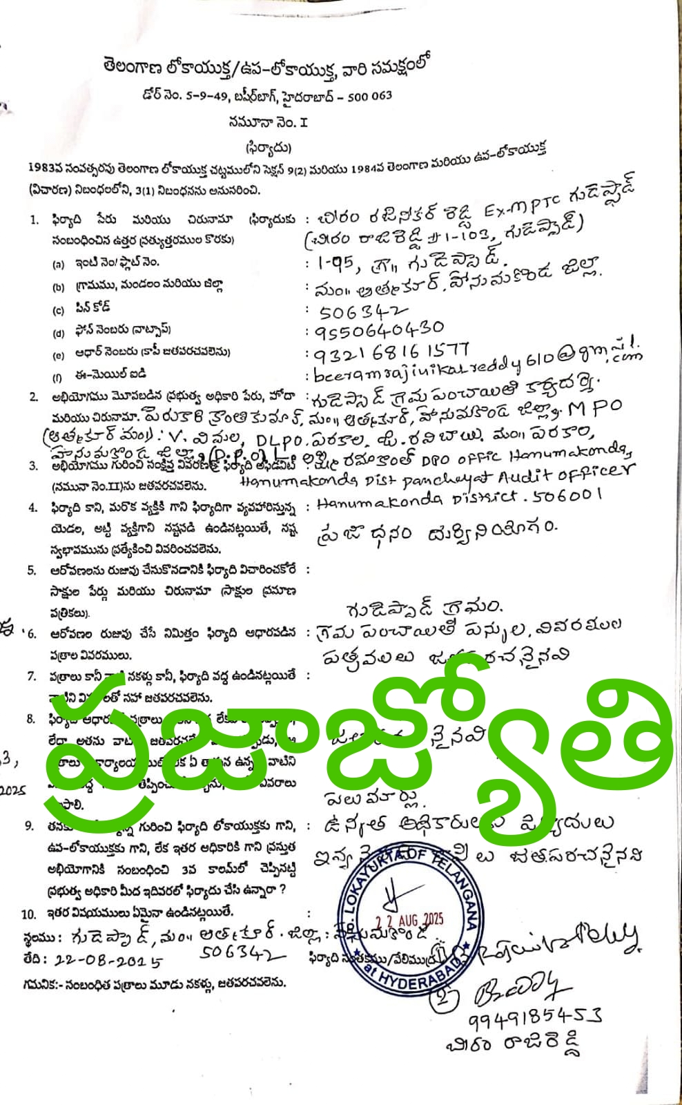 గూడెప్పాడ్ పంచాయితీ కార్యదర్శిపై ‘లోకాయుక్త’ లో ఫిర్యాదు..