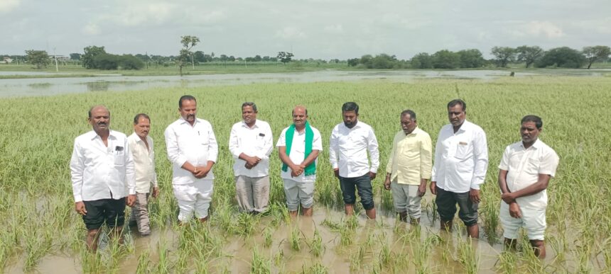నాగిరెడ్డిపేట్ మండలంలో మంజీరా నది పరిహాక ప్రాంతంలో గత ఆరు రోజులుగా పంట పొలాలు నీటిలో మునిగి ఉన్నాయని, దీంతో రైతులకు భారీ పంట నష్టం జరిగిందని బీఆర్ఎస్ నాయకులు తెలిపారు. శుక్రవారం బంజారా వద్ద నీట మునిగిన పంటలను వారు సందర్శించి పరిశీలించారు. ఈ సందర్భంగా వారు మాట్లాడుతూ ప్రభుత్వంకు రైతుల పట్ల చిత్తశుద్ధి లేదని,వరదలు వచ్చి ఆరు రోజులైనా పంటలు నీటిలోనే మునిగివుంటే, ముంపు నుంచి పంటలు బయటకు రాకున్నా కాంగ్రెస్ నాయకులు ఎమ్మెల్యే చిత్రపటానికి పాలాభిషేకం చేయడం హాస్యాస్పదమని ఎద్దేవా చేశారు.రైతుల పంట పొలాలు నీటిలో మునిగి ఉంటే కాంగ్రెస్ నాయకులు సంబరాలు చేసుకుంటున్నారని, గతంలో ఇంతకన్నా భారీ వరదలు వచ్చినపుడు భిఆర్ఎస్ ప్రభుత్వ హయాంలో మాజీ ఎమ్మెల్యే జాజాల సురేందర్ స్థానికంగా ఉండి నిజాంసాగర్ జలాశయం వద్ద బైఠాయించి నీటిని విడుదల చేయించి రైతులను,పంటలను కాపాడని ఘనత బీఆర్ఎస్ ప్రభుత్వానిదని వారు తెలిపారు. ఈ కార్యక్రమంలో బీఆర్ఎస్ మండల పార్టీ అధ్యక్షుడు గుర్రాల సిద్దయ్య, మాజీ జెడ్పిటిసి ఉమన్నగారి మనోహర్ రెడ్డి, నాయకులు రాజీరెడ్డి, వంశీ గౌడ్ హన్మంత్ రెడ్డి లక్ష్మీకాంతం, ఫరీద్, సాయిలు తదితరులు పాల్గొన్నారు