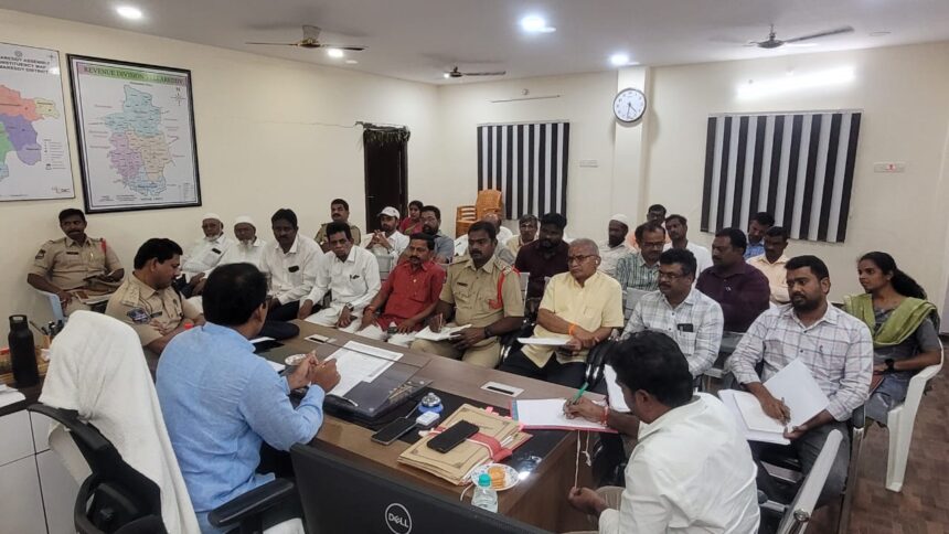 గణేష్ ఉత్సవాలను శాంతియుత వాతావరణంలో జరుపుకోవాలని ఎల్లారెడ్డి ఆర్డిఓ పార్థసింహారెడ్డి సూచించారు. శుక్రవారం ఆర్డీఓ కార్యాలయంలో గణేష్ చతుర్థి ఉత్సవాలపై మున్సిపల్ కమిషనర్లు, పోలీసు అధికారులు, గణేష్ ఉత్సవ సమితి, సంబంధిత అధికారులు, ప్రజా ప్రతినిధులతో, మత పెద్దలతో శాంతి కమిటీ సమావేశాన్ని నిర్వహించారు. ఈ సందర్భంగా ఆయన మాట్లాడుతూ.. ఈ నెల వినాయక చవితి ఉత్సవాలు భక్తులు, నిర్వాహకులు భక్తిశ్రద్దలతో సురక్షిత వాతావరణంలో పండుగ జరుపుకోవాలని కోరారు. ప్రభుత్వం నిర్దేశించిన మార్గదర్శకాలను పాటిస్తూ మండపాల నిర్వాహకులు జాగ్రత్తలు తీసుకోవాలని తెలపారు. గణేష్ శోభాయాత్ర నిర్వహించే దారిలో గుంతలు పడినరహదారులు, ప్యాచ్ వర్క్ పనులు, గణేష్ నిమజ్జనం నిర్వహించే ప్రదేశాల వద్ద క్రేన్లు, బారికేడింగ్, వేదిక ఏర్పాట్లు మున్సిపల్, ఆర్అండ్బీ శాఖ అధికారులు కలసి చేపట్టాలని, ప్రజలకు ఎలాంటి ఇబ్బందులు కలగకుండా అధికారులు ముందస్తు ప్రణాళిక రూపొందించుకొని పనిచేయాలని సూచించారు. ముఖ్యంగా విద్యుత్ అంతరాయం కలగకుండా నిరంతరం సరఫరా కొనసాగించాలని, సమస్యలు ఎక్కువగా ఉన్నచోట బందోబస్తూ కల్పించాలని, సీసీ కెమెరాలు ఏర్పాట్లు చేయాలన్నారు. నంబరింగ్ ఇచ్చిన మండపాల వద్ద పరిశుభ్రత పాటించాలని, వాటి వద్ద ప్రత్యేక సిబ్బందిని ఏర్పాటు చేయాలని, ఫాగింగ్, శానిటేషన్పై ప్రత్యేక దృష్టిసారించాలని అధికారం ఆదేశించారు. విగ్రహాలు ఊరేగింపు సమయంలో వాహనాల్లో ఎటువంటి యాంత్రిక సమస్యలు తలెత్తకుండా చూసుకోవాలని, నిమజ్జన శోభాయాత్ర మార్గాల్లో వేలాడే తీగలు, వంగి ఉన్న చెట్లు, తదితర వాటిని తొలిగించాలని తెలిపారు. చెరువుల వద్ద ప్రమాదాలు జరగకుండా జాగ్రత్తలు తీసుకోవాలని సూచించారు. అవాంఛనీయ సంఘటనలు జరగకుండా మున్సిపల్, పోలీసు అధికారులు సమన్వయంతో పనిచేయాలని సూచించారు. సమావేశంలో డీఎస్పీ శ్రీనివాస్ రావు, సీఐ రాజారెడ్డి, మున్సిపల్ కమిషనర్ మహేష్, తహసీల్దార్ ప్రేమ్ కుమార్, డీఎల్పిఓ సురేందర్, ఎస్సై మహేష్, ఫైర్ అధికారి వినోద్, వివిధ పార్టీల ప్రజాప్రతినిధులు తదితరులు పాల్గొన్నారు.