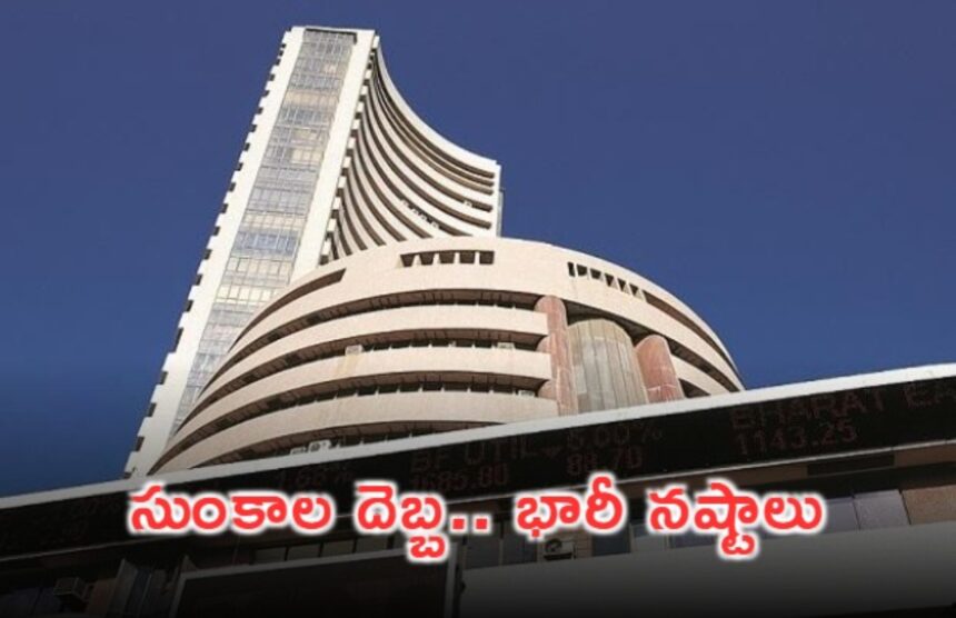 దేశీయ స్టాక్ మార్కెట్లు గురువారం భారీ నష్టాల్లో ముగిశాయి. భారత్పై అమెరికా విధించిన సుంకాలు అమల్లోకి రావడంతో మదుపరుల సెంటిమెంట్ తీవ్రంగా దెబ్బతింది. దీనికితోడు అంతర్జాతీయ మార్కెట్ల నుంచి బలహీన సంకేతాలు, విదేశీ పెట్టుబడిదారుల అమ్మకాలు కొనసాగుతుండటం సూచీల పతనానికి దారితీసింది. ఈ అమ్మకాల సునామీలో మదుపరుల సంపద భారీగా హరించుకుపోయింది. ఒక్కరోజే బీఎస్ఈ నమోదిత కంపెనీల మార్కెట్ విలువ ఏకంగా రూ.4 లక్షల కోట్లు తగ్గి రూ.445 లక్షల కోట్లకు పడిపోయింది.