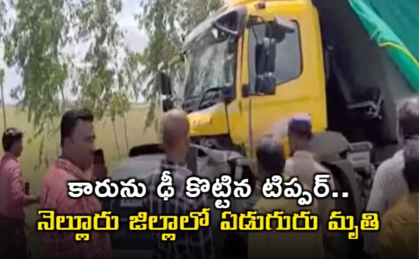 రాంగ్ రూట్ లో దూసుకు వచ్చిన ఓ టిప్పర్ లారీ ఎదురుగా వస్తున్న కారును ఢీ కొట్టింది. దీంతో కారులోని ఏడుగురు ప్రయాణికులు అక్కడికక్కడే చనిపోయారు. శ్రీపొట్టిశ్రీరాములు నెల్లూరు జిల్లాలో ఈ రోజు ఉదయం చోటుచేసుకుందీ ఘోర ప్రమాదం. స్థానికులు తెలిపిన వివరాల ప్రకారం.. సంగం మండలం పెరమన వద్ద జాతీయ రహదారిపై ఈ ఘోర ప్రమాదం జరిగింది. కారు నెల్లూరు నుంచి కడప వైపు వెళుతుండగా, టిప్పర్ రాంగ్ రూట్ లో వేగంగా రావటం వల్లే ఈ ప్రమాదం సంభవించిందని ప్రత్యక్ష సాక్షులు పేర్కొన్నారు.