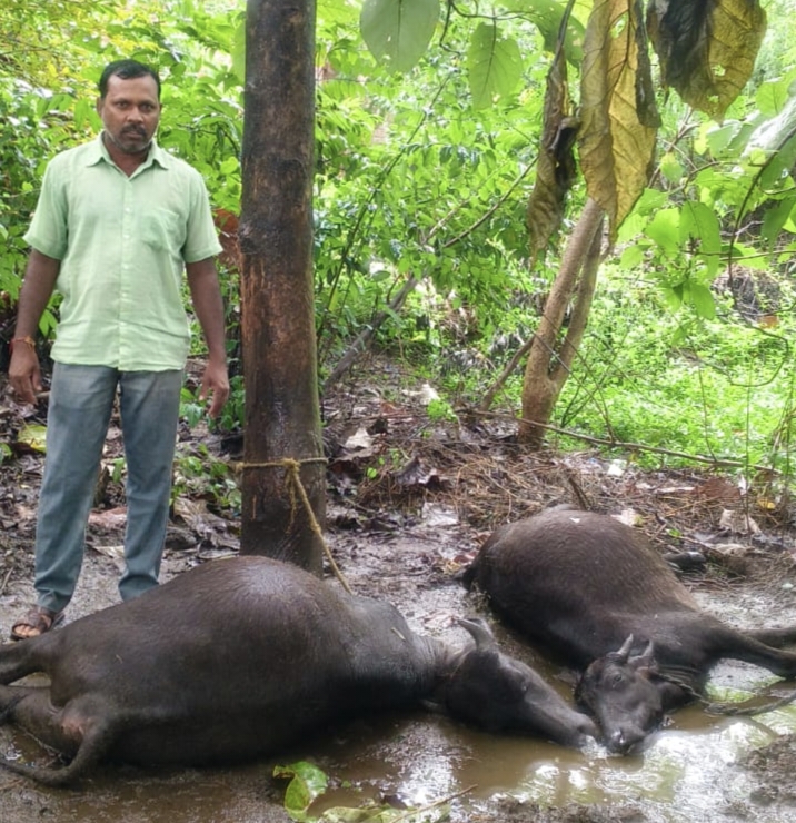పిడుగు పడి రైతుకు తీవ్ర నష్టం: రెండు గేదెలు దూడలు మృతి