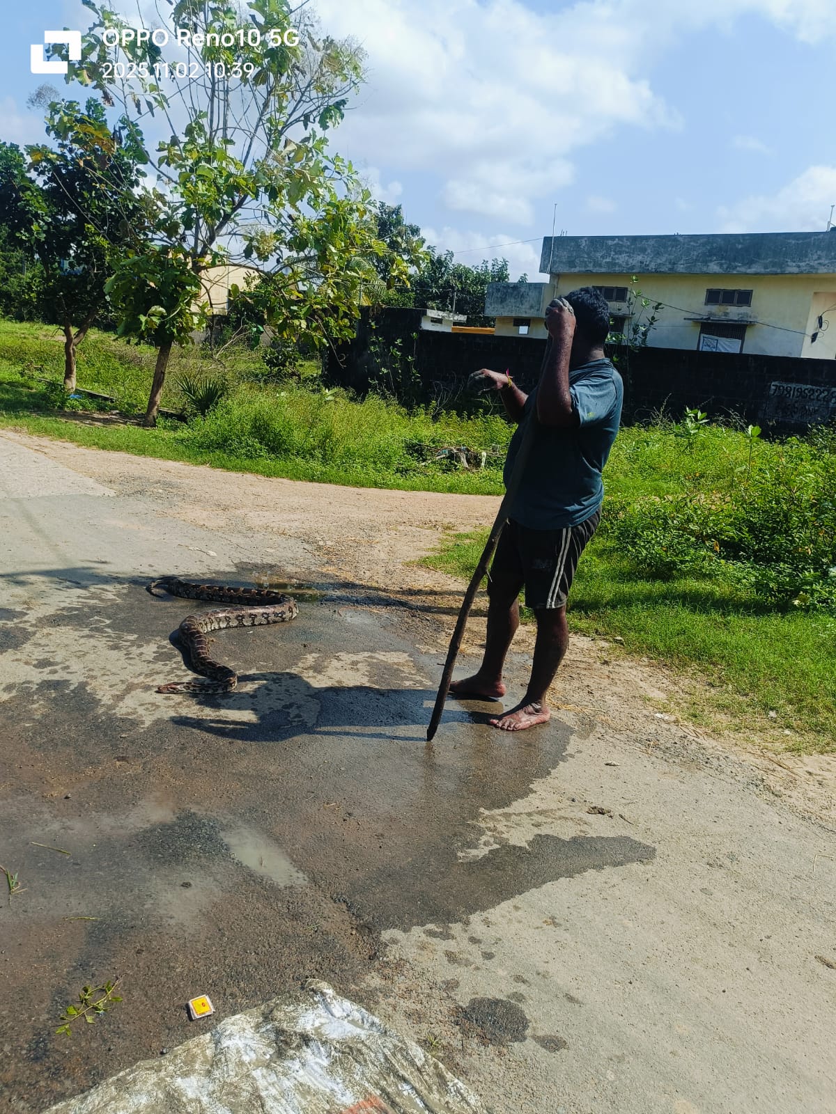 పర్వతగిరి మండలం ఏనుగల్ గ్రామంలో పులి ప్రవీణ్ (ఆర్వెస్టర్) వారికోత మిషన్ తో పొలంలో వరి కోపిస్తున్న సమయంలో మిషన్ ఆపరేటర్ పొలంలో కొండచిలువ పామును గుర్తించి రైతులకు తెలిపారు. వెంటనే రైతులందరూ కలిపి కర్రల సహాయంతో కొండచిలువ పాములు చంపేశారు. ఈ సందర్భంగా వారు మాట్లాడుతూ ఇళ్లకు ఆనుకొని వరి పొలాలు ఉండటం ఆ పొలాల్లోకి కొండచిలువ పాము రావటంతో గ్రామస్తులు ఒక్కసారిగా భయాందోళనకు గురయ్యామని వెంటనే అధికారులు స్పందించి గ్రామాల్లో తిరుగుతున్నటువంటి కొండచిలువ పాముల నుండి ఎలాంటి అవాంఛనీయ సంఘటనలు చోటు చేసుకోకుండా చూడాలని కోరారు.