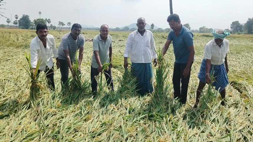 రైతులు పై పంజా విసిరిన మొంథా తుఫాన్కు తోడు అధికారుల నిర్లక్ష్యం రైతుల పాలిట శాపంగా మారింది. వరంగల్ జిల్లా పర్వతగిరి మండలంలో ఇటివల కురిసిన వర్షంతో రైతుల జీవితాల్లో అంతులేని వ్యథను మిగిల్చిందని మాజీ ఎంపిటిసి మాడుగుల రాజు అన్నారు.మండల వ్యాప్తంగా 14800 ఎకరాల వరి పోలాలు నాట్లు వేశారని అందులో 11వేల ఎకరాలకు పైగా తుఫాన్ ధాటికి దెబ్బతిన్నాయని, ఎన్నో వేల ఎకరాలు ఇప్పటికి నీట మునిగే ఉన్నాయని.. వేలాది కుటుంబాల రైతులు రోడ్డున పడ్డారని అన్నారు. అధికారులు కనీసం కన్నెత్తి చూడకుండా నేడు రేపు అంటూ ఆరు రోజులు గడిచిన గాని నీట మునిగిన పొలాలను పరిశీలించి పట్టించుకున్న పాపాన పోలేదని ఆవేదన వ్యక్తం చేస్తున్నారు. స్థానిక రైతు పూర్ణచంద్రరావు మాట్లాడుతూ అధికారంలో ఉన్న కాంగ్రెస్ నేతల పొలాలను మాత్రమే ఏవో పరిశీలిస్తున్నారని ఎన్నిసార్లు ఫోన్లు చేసిన గాని స్పందించడం లేదని అనఅన్నారు. ఇటివల కోందరు నాయకులు పర్యటించినా బాధితులకు 10వేల భరోసా ఇస్తామనడం విడ్డురమని పంటలకు పెట్టిన కీటబడి కూడా రాదని కనీసం ఎకరానికి 25వేలు ఇచ్చి ఆదుకుంటామన్న ప్రకటన కూడా చేయలేదు. ప్రకృతి ప్రకోపం.. అధికారుల పట్టింపులేనితనం ప్రజలను కోలుకోని విధంగా దెబ్బతీశాయని అన్నారు. ఈ పాపం ఎవరిదన్న ప్రశ్నకు సమాధానం దొరకనిదిగా మిగిలిందని ఇప్పటికైనా జిల్లా వ్యవసాయ అధికారులు వెంటనే స్పందించి సమగ్ర నివేదిక తయారు చేసి పంట నష్టాన్ని అంచనా వేసి వీలైనంత త్వరగా నష్టపరిహారం అందజేయాలని కోరారు.