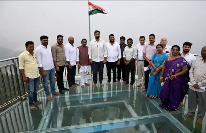 విశాఖలో అత్యంత ప్రతిష్టాత్మకంగా నిర్మించిన గ్లాస్ బ్రిడ్జ్ ప్రారంభమైంది. సుమారు రూ. 7 కోట్ల నిధులతో ఈ గ్లాస్ బ్రిడ్జిని కైలాసగిరిపై నిర్మించారు. ప్రారంభోత్సవ కార్యక్రమంలో ఎంపీ భరత్, మేయర్ పీలా శ్రీనివాసరావు, ఎమ్మెల్యే వెలగపూడి రామకృష్ణబాబు, వీఎంఆర్డీఏ ఛైర్మన్ ప్రణవ్ గోపాల్ పాల్గొన్నారు.