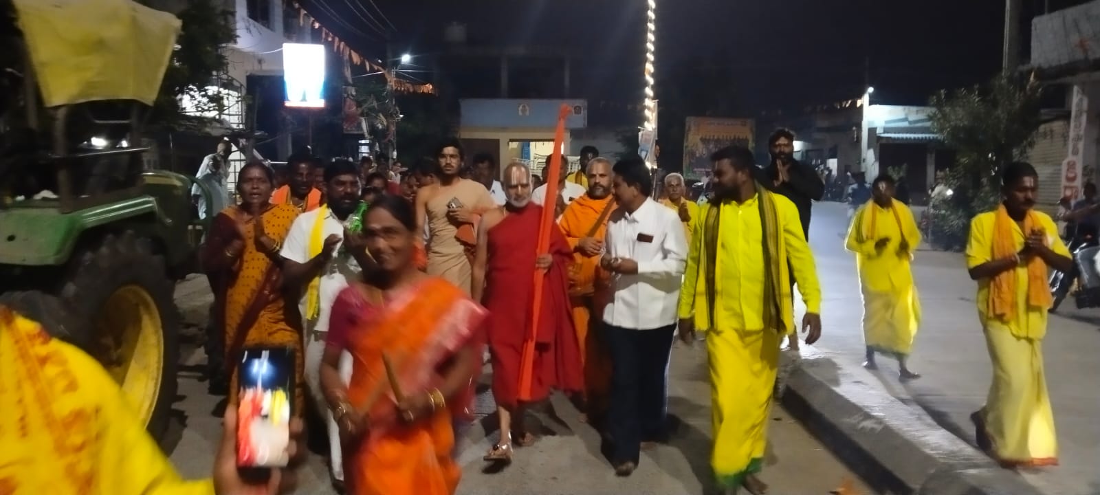 ప్రతి ఒక్కరూ మాధవసేవగా సర్వప్రాణి సేవ లక్ష్యంగా ముందుకు సాగాలని సమాజ స్వరూపుడైన భగవంతున్ని ప్రార్థించడం అంటే సమాజానికి సేవ చేయడమే అని తెలుసుకోవాలని శ్రీశ్రీశ్రీ త్రిదండి దేవనాథ జీయర్ స్వామి అన్నారు. మండల కేంద్రంలోని శ్రీ వేణుగోపాల స్వామి ఆలయంలో మంగళవారం రాత్రి వికాస తరంగిణి ఆధ్వర్యంలో నిర్వహించిన ఆచార్య సేవగా భగవత్ భాగవత సేవ అనే కార్యక్రమంలో హాజరై భక్తులకు సందేశాన్ని అందజేశారు. భక్తులు స్వామిని పోచమ్మ సెంటర్ నుండి ఆలయం వరకు భజనలు కోలాటం తో శోభా యాత్ర ద్వారా స్వామిని ఆలయానికి తీసుకువచ్చారు. అర్చకులు ఆరుట్ల మాధవ మూర్తి పూర్ణకుంభంతో స్వాగతం పలికారు. దేవనాథ జీయర్ స్వామి మాట్లాడుతూ ధనుర్మాస వ్రతంలో భక్తులు గోదాదేవి ఆచరించిన వ్రతాన్ని భక్తులు ఆచరించాలని అన్నారు. భక్తులు సనాతన ధర్మాన్ని పరిరక్షించాలని అన్నారు. కార్యక్రమంలో వికాస తరంగిణి ఉమ్మడి జిల్లా అధ్యక్షుడు డాక్టర్ బచ్చు రాధాకృష్ణ, జిల్లా కార్యవర్గ సభ్యుడు పోలు రాజేష్ కుమార్, దయాకర్ రెడ్డి, తిరుమల్ రావు, ఆరుట్ల కేశవమూర్తి, అర్చకులు ఆరుట్ల మాధవమూర్తి, ఆత్మకూరు శాఖ అధ్యక్షుడు టింగిలికారి సత్యనారాయణ, కార్యదర్శి నాగబండి శివప్రసాద్, భజన మండలి అధ్యక్షుడు పరికిరాల వాసు, ఉప్పునూతుల శంకర్, పలుకల మంజుల, కొండబత్తుల వేణు, గుండెబోయిన కుమార్, రేవూరి జైపాల్ రెడ్డి,తదితరులు పాల్గొన్నారు.
