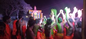 భక్తి పాటలు పై హనుమాన్ దీక్ష స్వాములు నృత్యాలు చేస్తూ వెంకటేశ్వర స్వామి ఆలయం నుంచి ర్యాలీగా ప్రారంభించి, అంగడి బజార్ వద్ద ముగించారు.