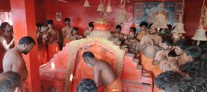 హనుమాన్ మందిరం లో పూజలు నిర్వహిస్తున్న స్వాములు