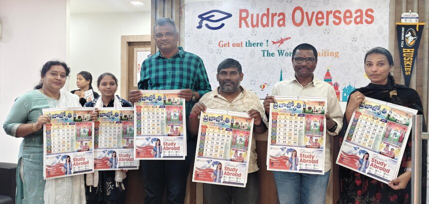 నూతన సంవత్సరాన్ని పురస్కరించుకొని రుద్ర ఓవర్సీస్ ఎడ్యుకేషన్ కన్సల్టెన్సీ ఆధ్వర్యంలో జాతీయ తెలుగు దిన పత్రిక ‘ప్రజా జ్యోతి’ క్యాలెండర్ను గురువారం ఘనంగా ఆవిష్కరించారు.