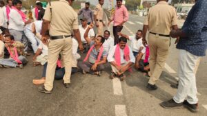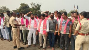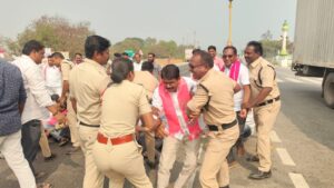 ఫోన్ ట్యాపింగ్ కేసులో బీఆర్ఎస్ అధినేత కేసీఆర్ కు సిట్ నోటీసులు జారీ చేయడాన్ని నిరసిస్తూ పోచంపాడ్ బి ఆర్ ఎస్ నాయకులు మెండోరా మండల నేతలు పోచంపాడ్ NH 47 రోడ్డుపై బైఠాయించి ప్రభుత్వానికి వ్యతిరేక నినాదాలు చేస్తూ , ప్రభుత్వానికి వ్యతిరేక నినాదాలతో ర్యాలీగా నిరసన తెలిపారు.