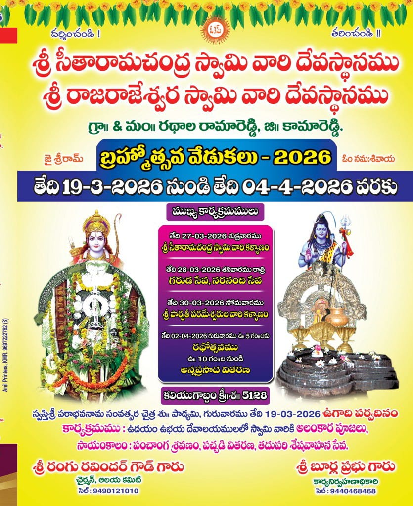 రామారెడ్డి మండల కేంద్రంలోని పవిత్రమైన ఉభయ ఆలయాల బ్రహ్మోత్సవాలు ఉగాది నుండి సుమారు 15 రోజులపాటు అంగరంగ వైభవంగా శ్రీ సీతారామచంద్ర రాజరాజేశ్వర ఆలయ లో బ్రహ్మోత్సవాలు కనులవిందుగా అంగరంగ వైభవంగా జరుగుతున్నాయి. ఈ యొక్క కార్యక్రమాలు భద్రాచలంలోని సీతారామచంద్రస్వామి వారికి జరిగే విధంగా ఈ యొక్క ఉభయ ఆలయాలలో కార్యక్రమాలను నిర్వహించడం జరుగుతుంది. ఈ కార్యక్రమాలను ఆలయ కమిటీ అధ్యక్షులు రంగు రవీందర్ గౌడ్ ఆధ్వర్యంలో ఉత్సవ కమిటీ అధ్యక్షుడు కుశలోల్ల రమేష్, అదేవిధంగా అభివృద్ధి కమిటీ, ఆలయ ఉత్సవ కమిటీ సభ్యుల ఆధ్వర్యంలో ఈ యొక్క బ్రహ్మోత్సవాలు కొనసాగుతున్నాయి.