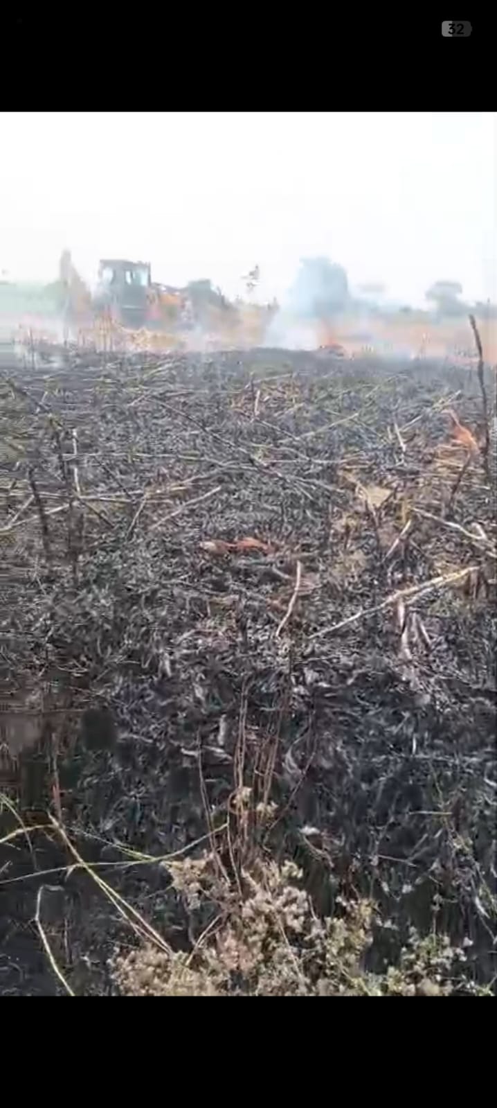 విద్యుత్ తీగ తెగిపడి దహనమైన పంట: జెసిబి సహాయంతో తప్పిన పెను ప్రమాదం