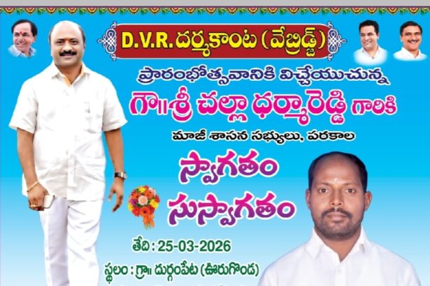 డీవీఆర్ ధర్మకాంట ప్రారంభించిన మాజీ ఎమ్మెల్యే చల్లా ధర్మారెడ్డి దామెర, మార్చి 25 (ప్రజాజ్యోతి): హనుమకొండ జిల్లా దామెర…